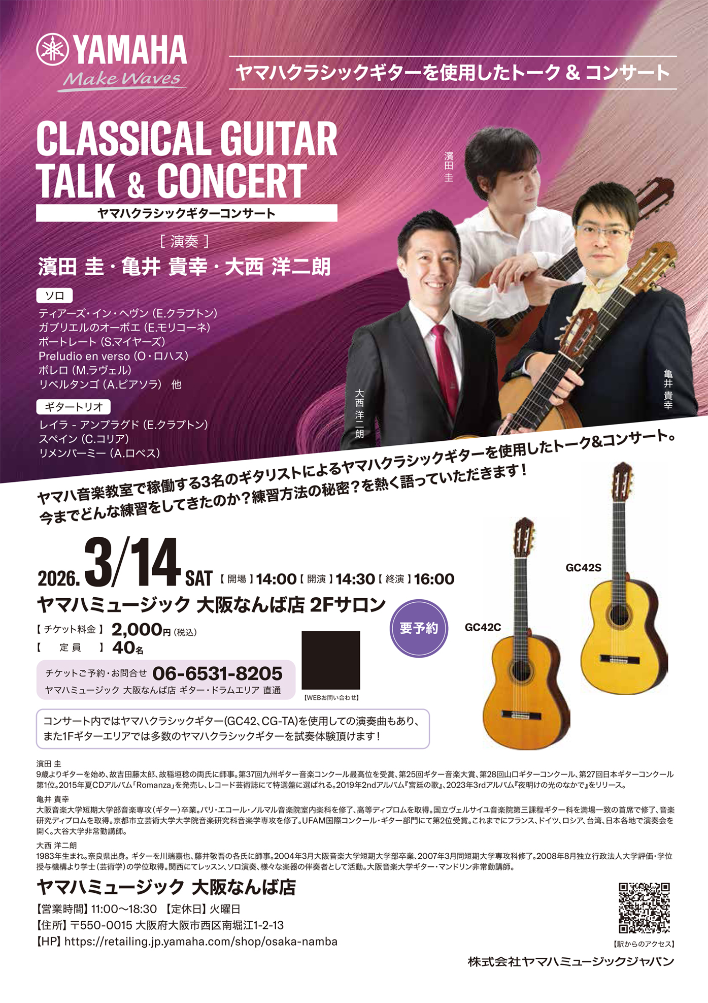 | ヤマハクラシックギターコンサート GCシリーズを聴き比べられるコンサート -ギタリスト3名の共演- |